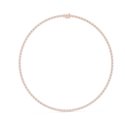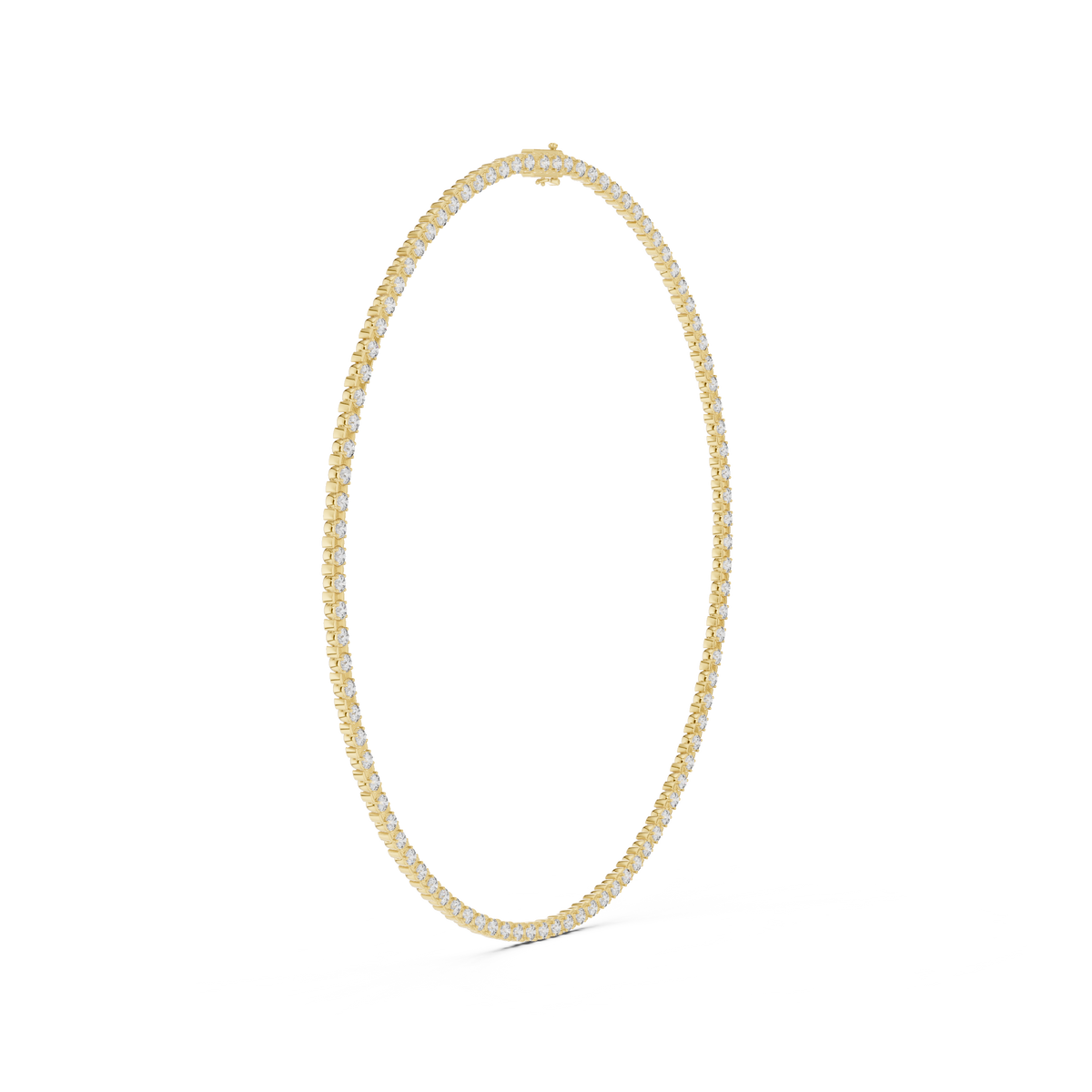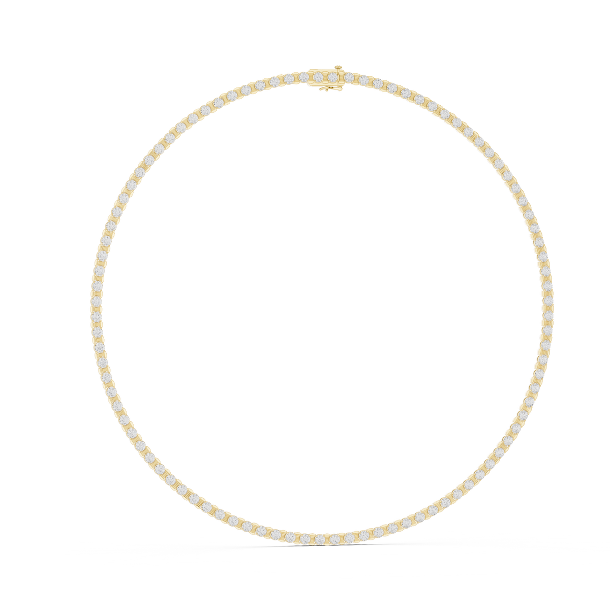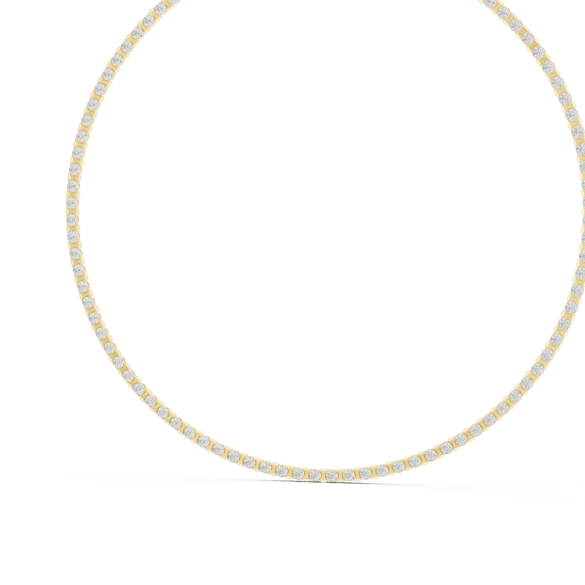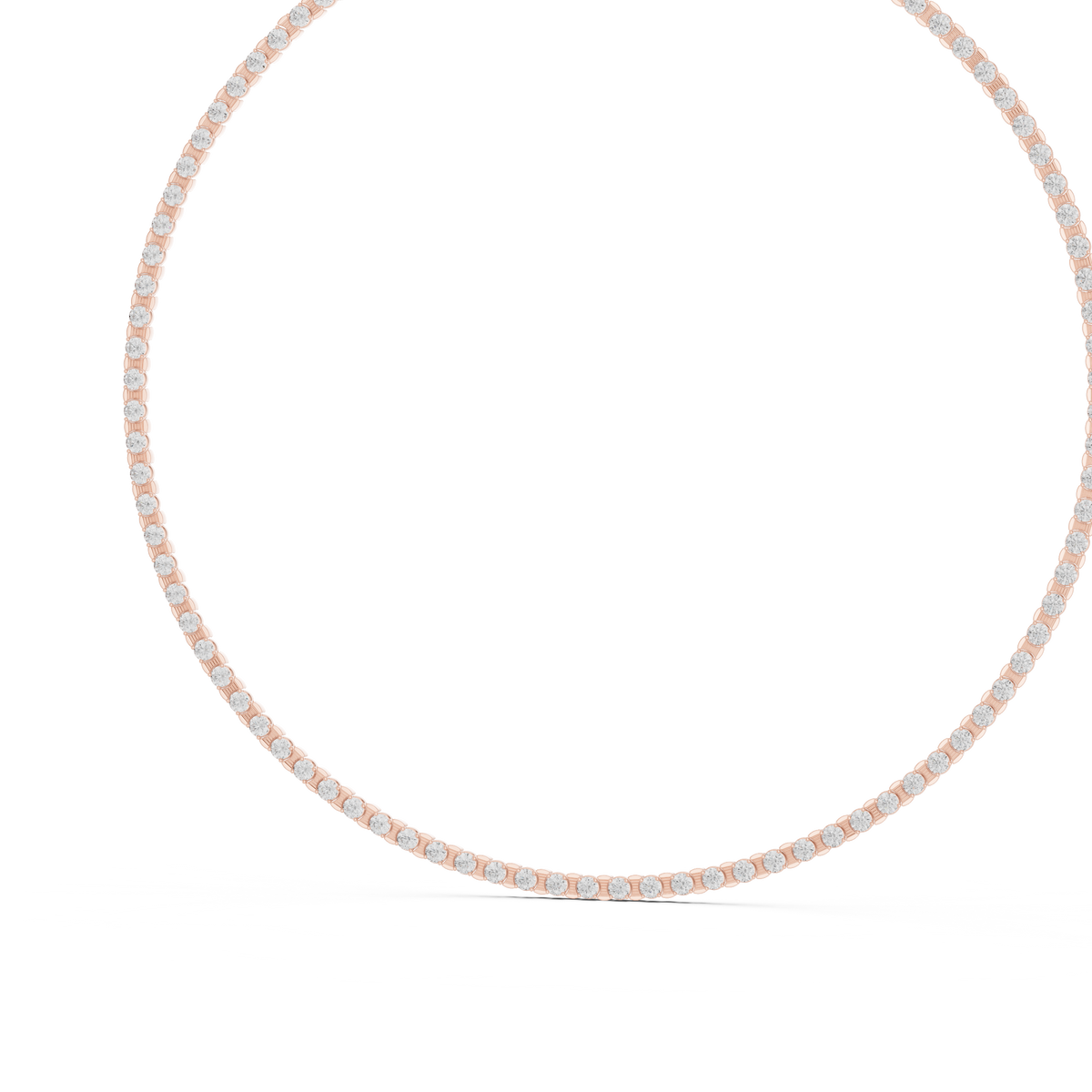 This timeless tennis chain necklace features a seamless row of round brilliant diamonds arranged in perfect symmetry for a sleek and elegant silhouette. Each diamond is individually set to form a continuous circle of light, creating smooth flow and balanced sparkle across the neckline. The refined structure offers both brilliance and polish, making it a sophisticated staple designed for everyday luxury and special occasions alike.