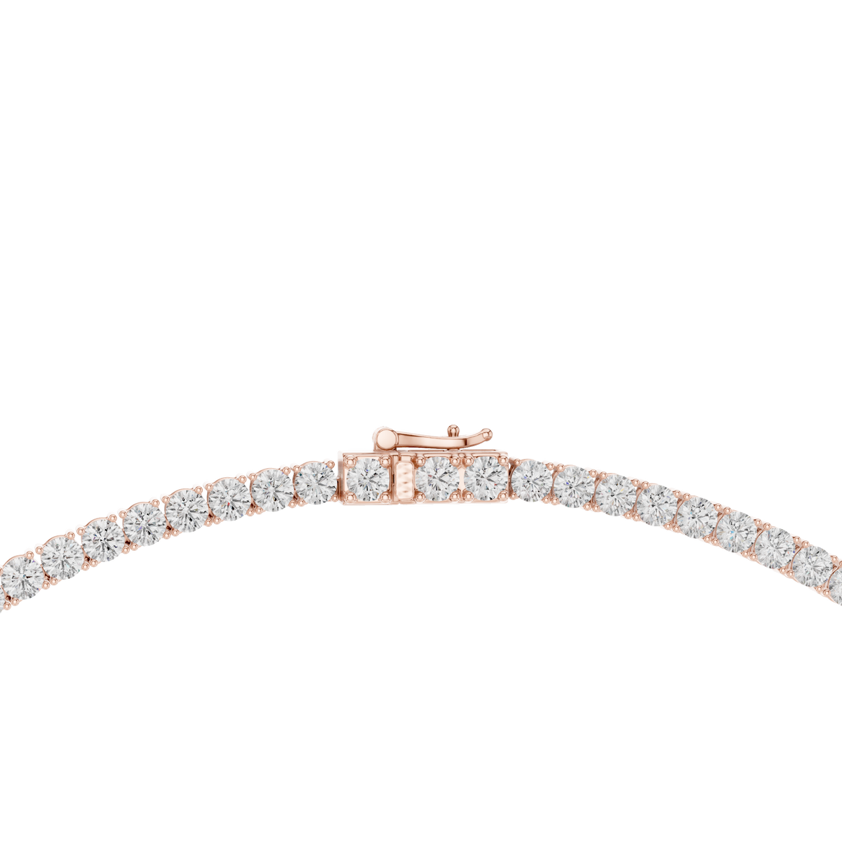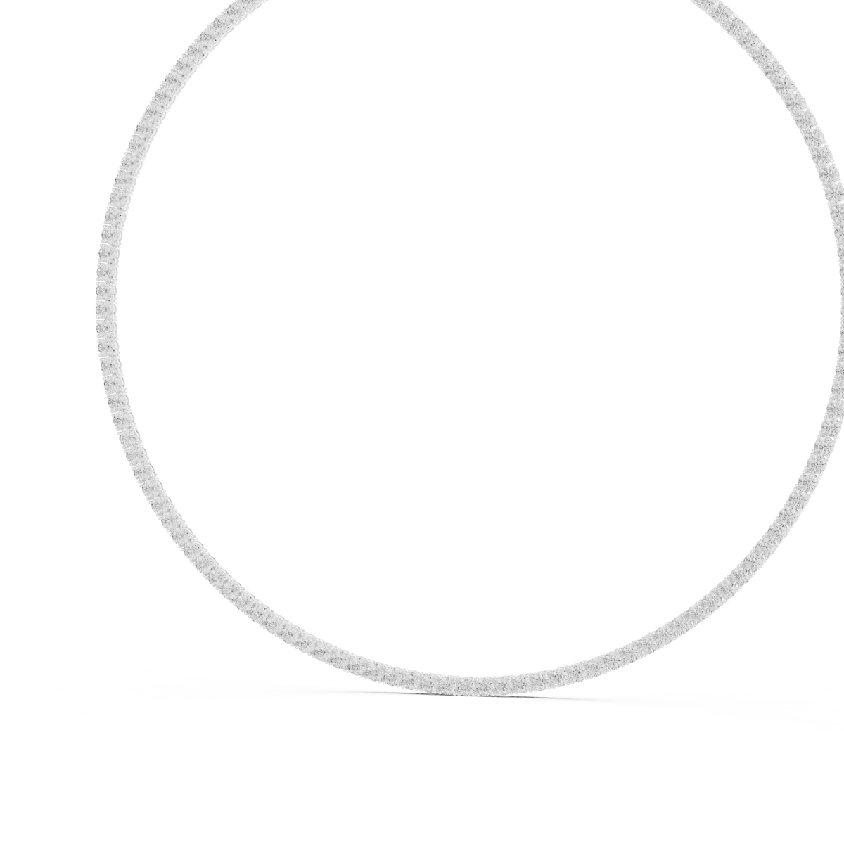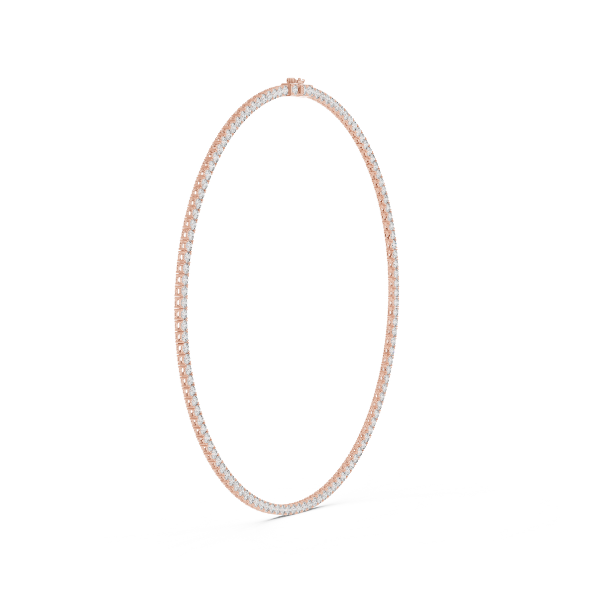 This elegant tennis riviera necklace features a seamless line of perfectly matched round diamonds arranged in a continuous silhouette around the neckline. Each stone is precisely set to create a fluid, symmetrical sparkle that catches the light from every angle. The clean, minimal structure enhances brilliance and polish, offering a refined look that feels both timeless and sophisticated.