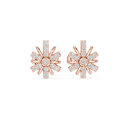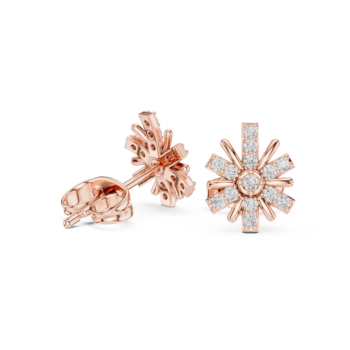 These refined stud earrings feature a radiant starburst floral silhouette crafted in a symmetrical cluster layout. Round brilliant diamonds form a luminous central cluster, while elongated diamond-set petals extend outward to create depth, dimension, and captivating sparkle. The structured stud profile sits close to the ear for a polished, elegant finish, delivering brilliance from every angle with a clean and contemporary presence.