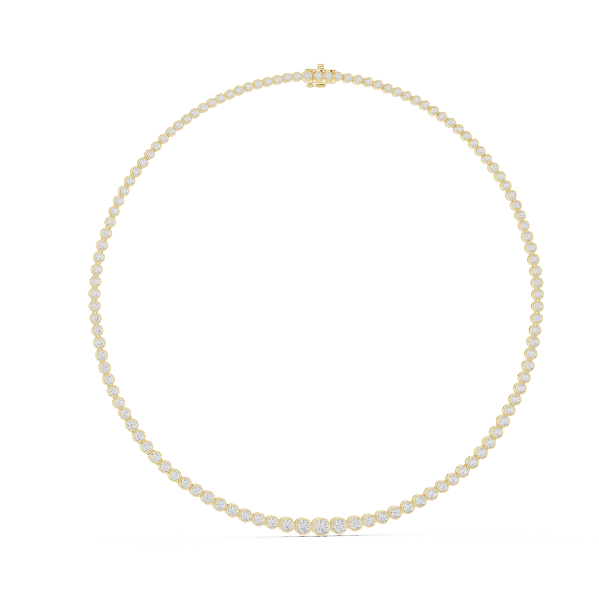 Elegant and endlessly wearable, this necklace delivers classic luxury with modern simplicity. The bezel-set diamonds offer both protection and contemporary style, making it perfect for everyday sophistication or special occasions. Its comfortable fit and timeless design ensure it becomes a cherished staple in any fine jewelry collection.