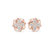 These diamond stud earrings showcase a graceful floral cluster design composed of round brilliant cut stones arranged in a symmetrical bloom silhouette. The structured pattern creates soft curves and dimensional depth, allowing light to reflect beautifully from every angle. Each diamond is secured in a refined collet setting, giving the studs a smooth, polished profile while enhancing brilliance and everyday wearability. The overall look is timeless, elegant, and delicately bold.