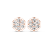 These diamond stud earrings feature a refined round disc silhouette adorned with a floral cluster of round brilliant cut stones. The symmetrical arrangement creates a full, luminous surface that reflects light beautifully from every angle. Each diamond is secured with precise prong settings, allowing maximum brilliance while maintaining a clean, polished profile. The balanced circular design delivers timeless elegance with a modern, sophisticated finish.