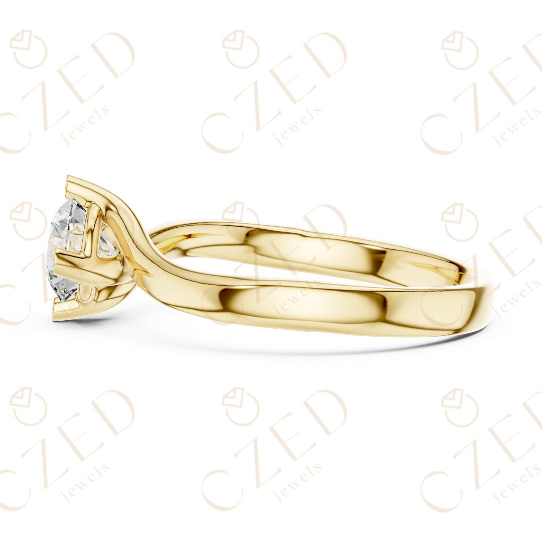 Round Brilliant Solitaire Diamond Ring with Sculpted Twist Band - 10K / VS