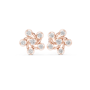 These sophisticated stud earrings feature a delicate swirled floral motif, where round brilliant diamonds are arranged in a flowing circular cluster. Sculpted curves intertwine to create graceful movement and an open, airy appearance that enhances light reflection. The compact silhouette offers a balanced and symmetrical look, delivering refined brilliance with a polished, contemporary finish.