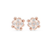 These graceful stud earrings feature a vintage-inspired floral cluster framed by elegant scrollwork. Round brilliant diamonds form a symmetrical flower at the center, while sculpted curves create a soft, ornamental border that adds depth and character. The open detailing enhances light flow, allowing each stone to shine with refined brilliance in a compact, comfortable stud profile.