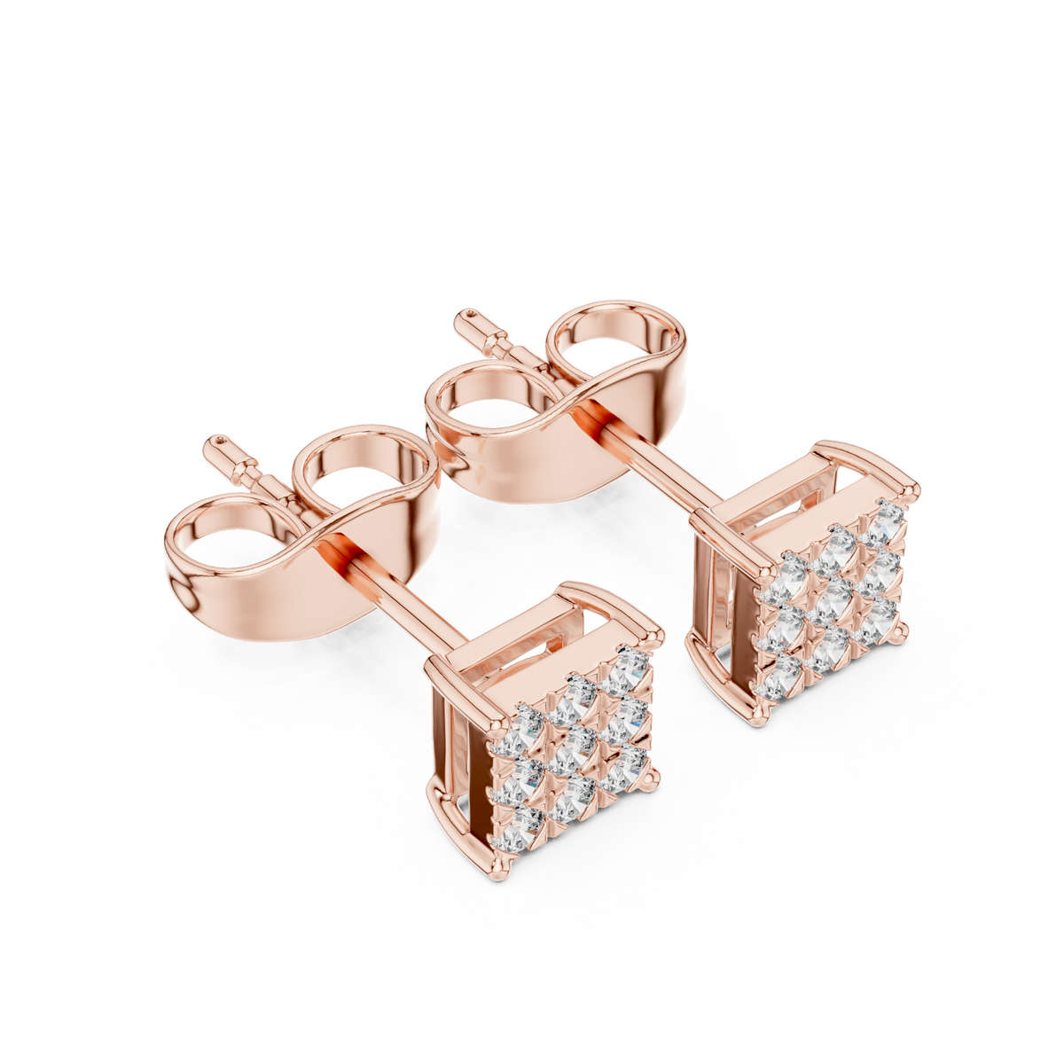 These diamond stud earrings feature a sleek square silhouette formed by a precise grid of round brilliant diamonds. The tightly arranged cluster creates the illusion of a seamless surface of light, while the clean geometric edges give the design a modern, architectural elegance. Crafted as classic studs, they sit close to the ear for a refined profile, delivering concentrated brilliance, symmetry, and a polished finish perfect for both everyday wear and special occasions.